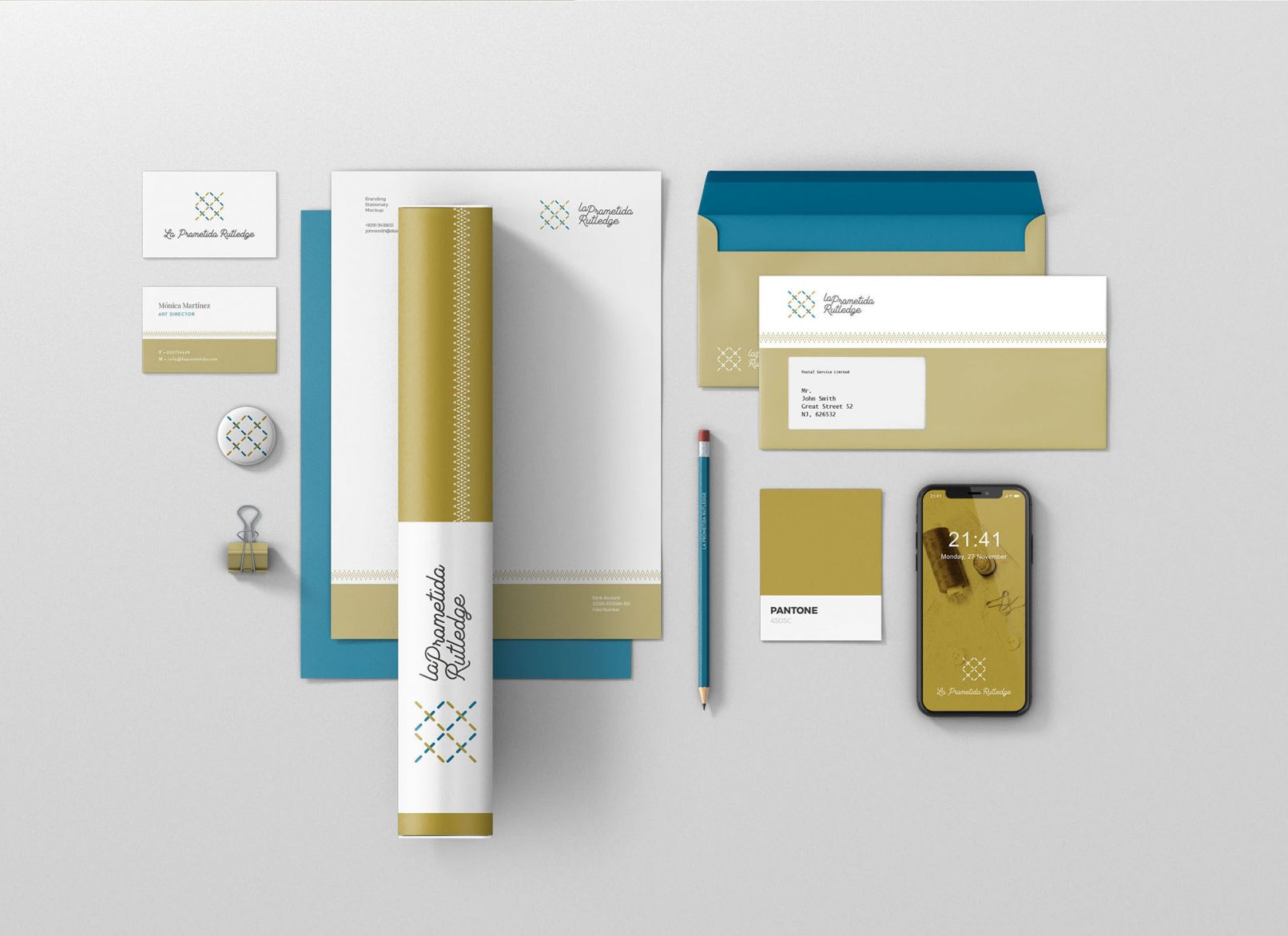 Branding de LA PROMETIDA RUTLEDGE, diseñadora de moda elegante e innovadora orientada a vestidos de novias y de fiesta.