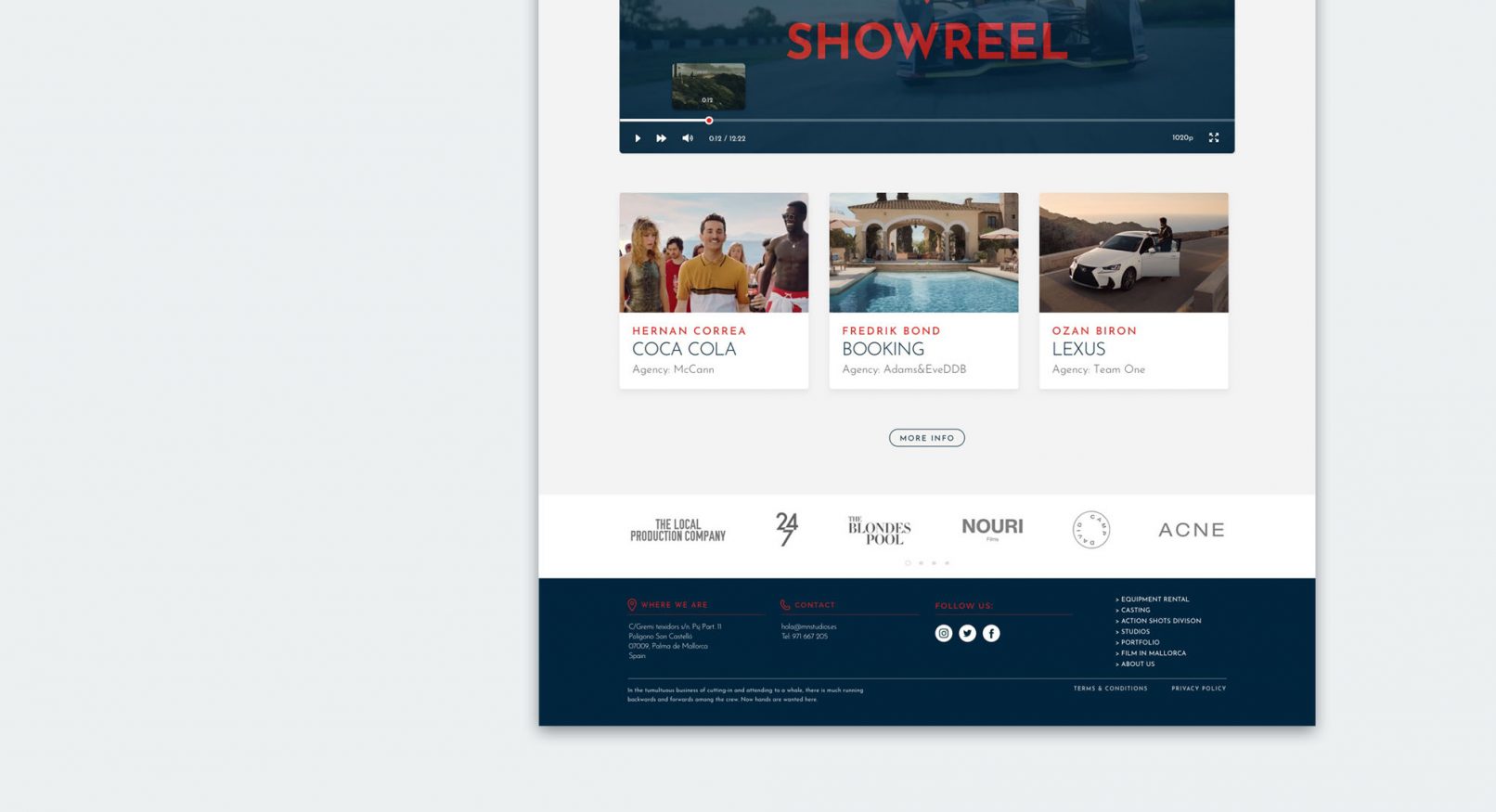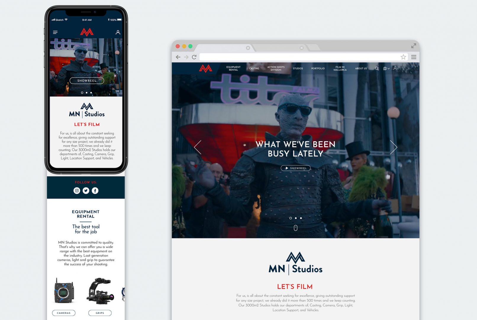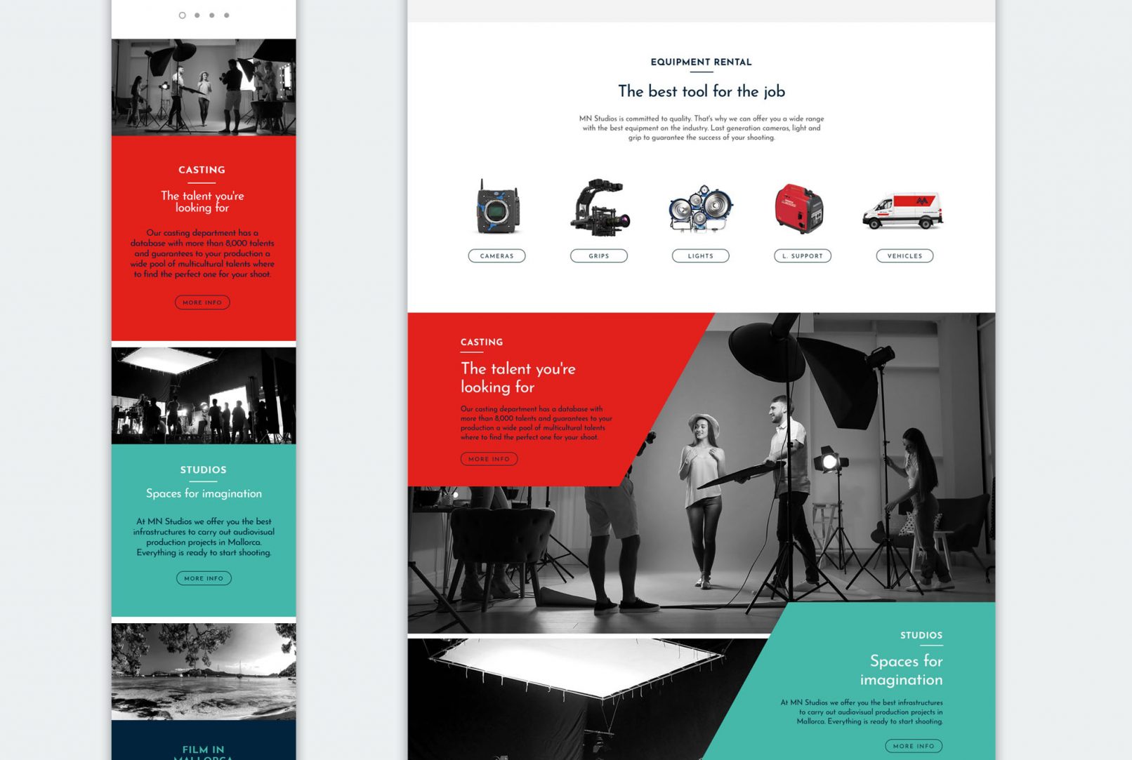 Diseño de la página web de MN Studios un cliente muy especial dedicado al alquiler de equipamiento a producciones audiovisuales así como castings, localizaciones o estudios de rodaje. Una Progresive Web App muy visual en la que se dio gran importancia a las imágenes, videos y colores de la misma.